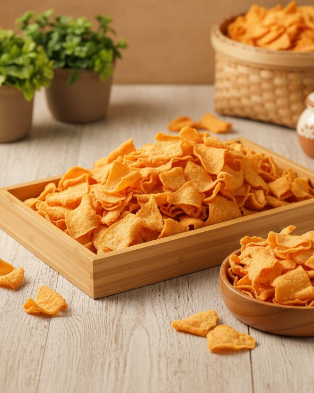 Soya Chips are a high-protein, crispy, and delicious snack made from premium soya flour blended with natural spices and herbs. Each chip is super crunchy, savory, and satisfying, offering a wholesome snacking experience for health-conscious individuals. Perfect for tea-time, tiffin boxes, travel, or festive occasions, these chips combine nutrition and flavor, making them a guilt-free alternative to regular fried snacks. Enjoy a protein-rich bite that supports a healthy lifestyle